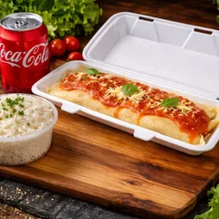 Saboreie nossa panqueca artesanal recheada com espinafre refogado, cenoura, tomate, alho frito, ovo cozido, requeijão e uma generosa camada de mussarela derretida. Uma explosão de sabores em cada mordida, feita com ingredientes selecionados para te surpreender!